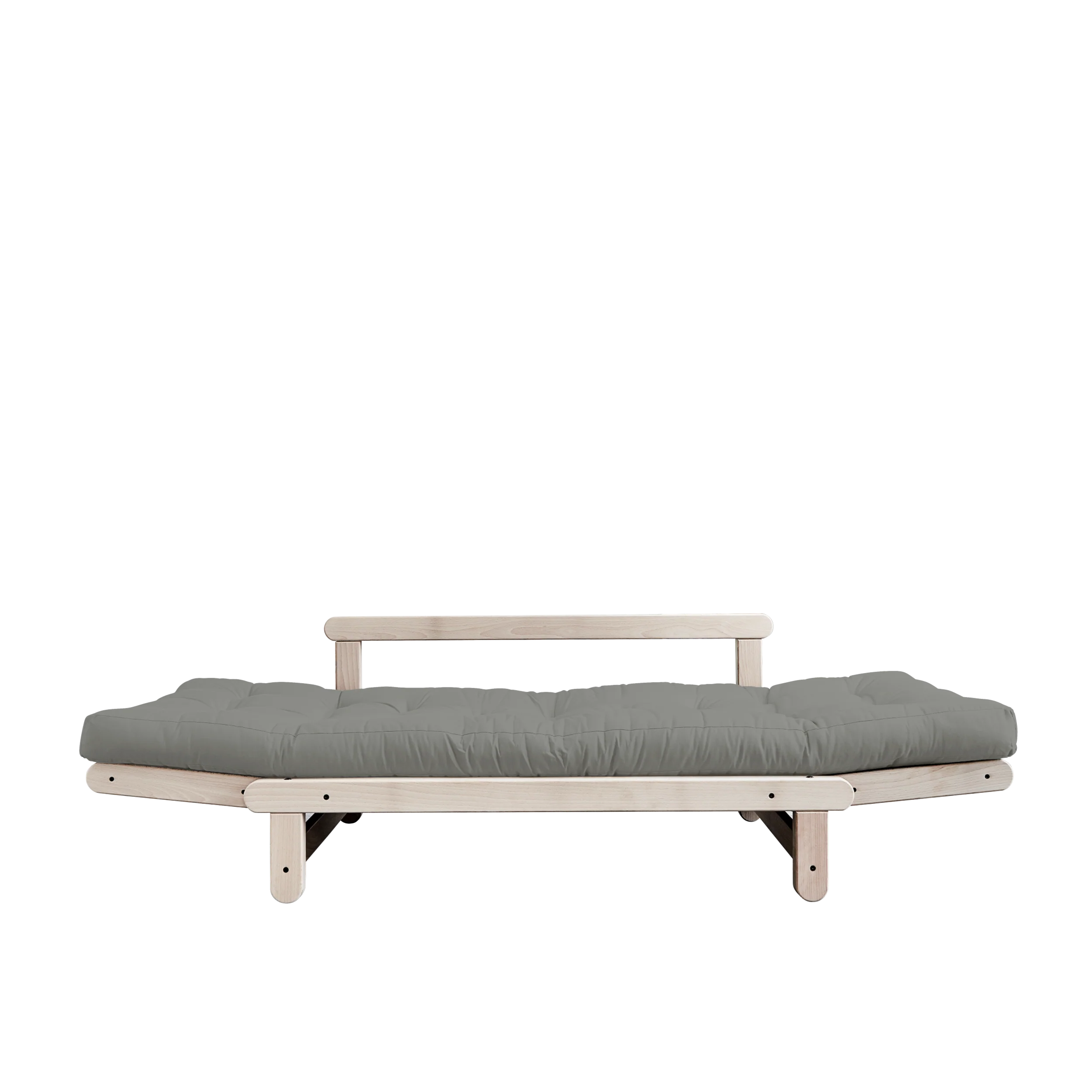 Beat sofa adds a touch of simplicity and airiness to any room in which you place it. With the arms up, the high-quality futon mattress creates an inviting nest of softness in which to sit: alone or with someone else. Lower one arm with a quick and easy motion and you've got a lounge chair in which you can stretch out, daydream and truly unwind. Put the other arm down and you create a single bed.