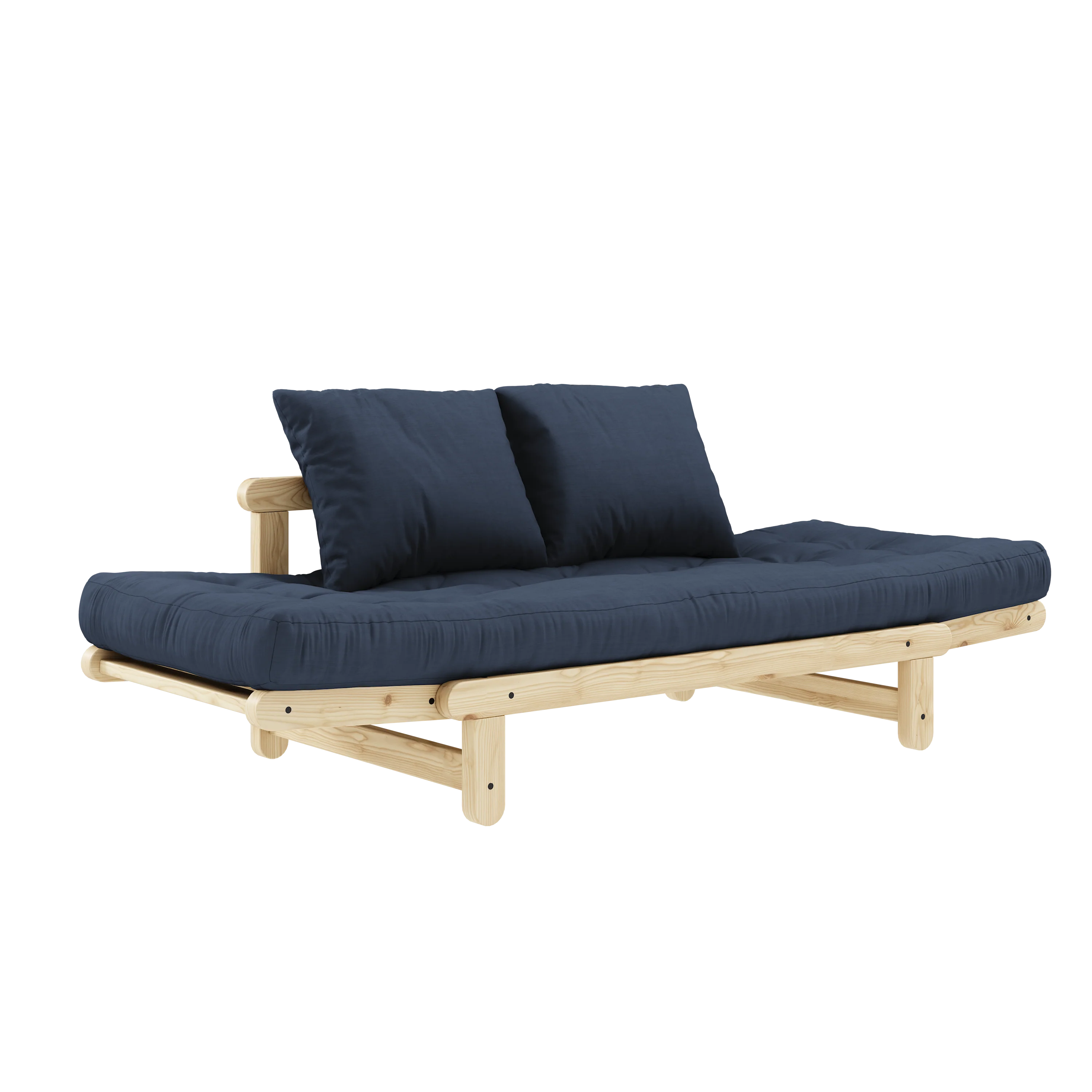 Beat sofa adds a touch of simplicity and airiness to any room in which you place it. With the arms up, the high-quality futon mattress creates an inviting nest of softness in which to sit: alone or with someone else. Lower one arm with a quick and easy motion and you've got a lounge chair in which you can stretch out, daydream and truly unwind. Put the other arm down and you create a single bed.